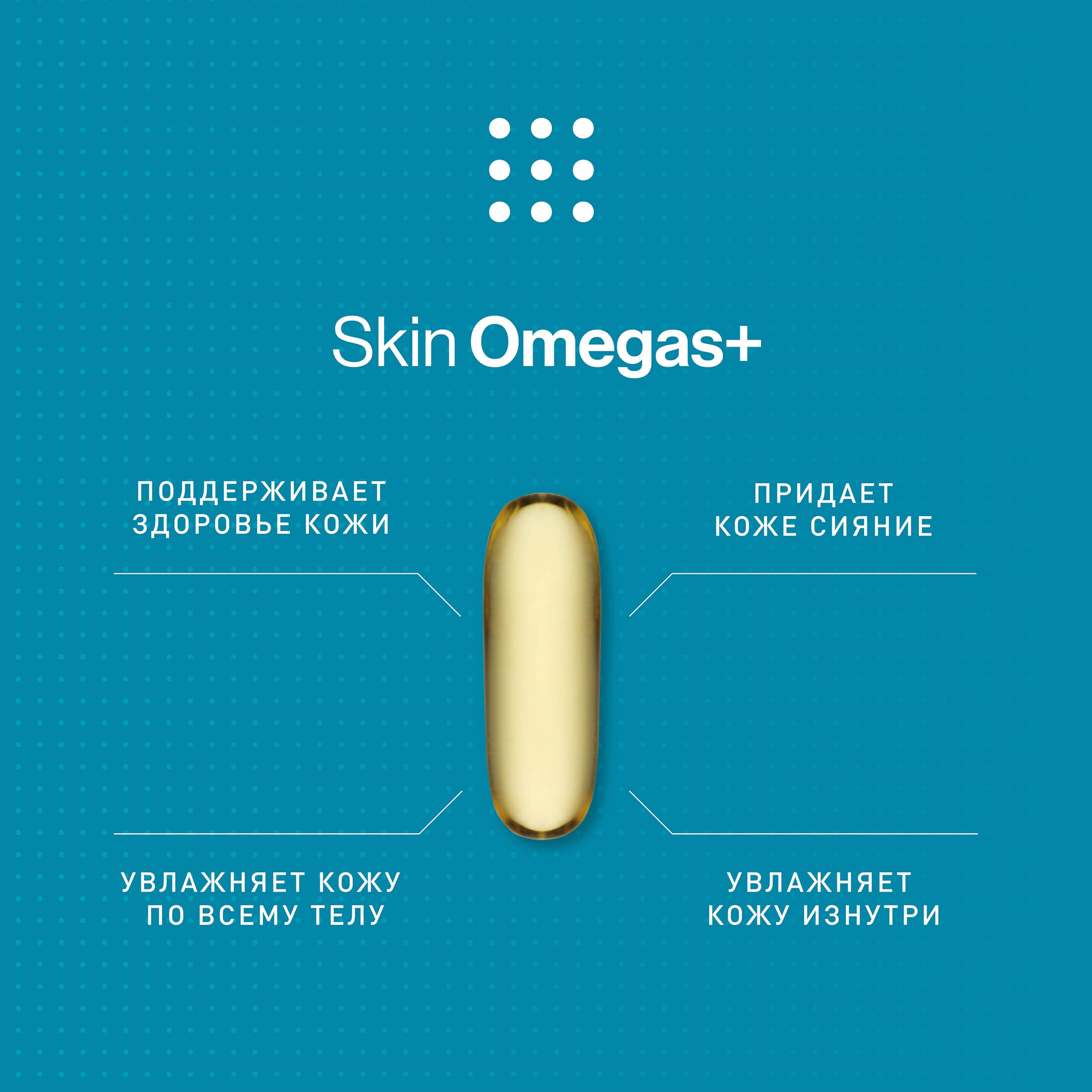 Skin Omegas+ — это высокоэффективный комплекс из ценных полиненасыщенных жирных кислот омега-3 и омега-6 в сочетании с витамином А для сияния, увлажнения и питания кожи. Повышенная чувствительность кожи, покраснения, сухость и шелушение – всё это свидетельство того, что кожа нуждается в витаминах и нутриентах.